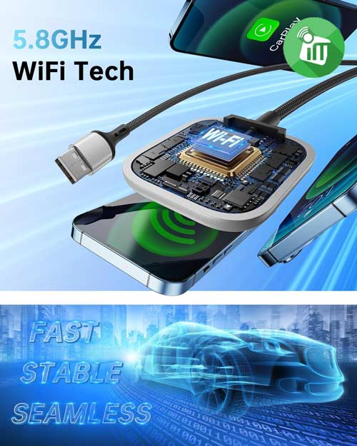 Eliminate the frustration of connection drops with our reliable CarPlay wireless adapter, ensuring a strong and steady connection that lets you stay focused on the road. Enjoy quick response times and zero delays when interacting with wireless CarPlay. Whether you’re following directions or managing your playlists, the adapter ensures your CarPlay works instantly and without interruption.