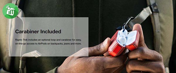 Raptic Trek includes an optional loop and carabiner for easy, on-the-go access to AirPods on backpacks, jeans and more