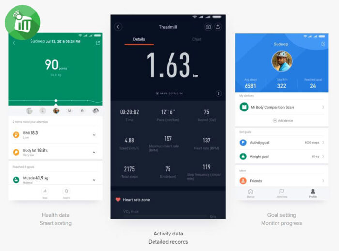 Mi Fit app keep a track of different characteristics of your body composition like body weight, fat percentage, body water percentage and more to provide you with a complete training programme