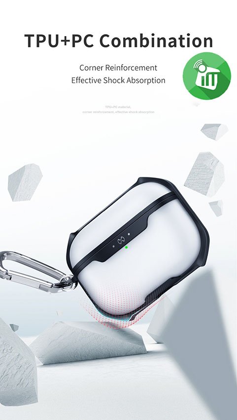 This case cover made of Frosted clear PC + Premium TPU frame which makes it odourless, dust proof, scratch proof, shock proof, anti-drop, anti-skidding and showing out the beautful design of original charging case while providing 360°protection