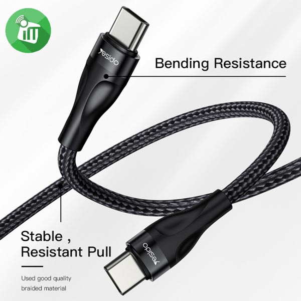Yesido CA83 Data Cable are flexible and can easily be rolled and clasp together to ensure an organized appearance USB-C cable with USB-C connector can take your everyday charging needs to the next level. It features a sturdy, braided nylon cable, and durable connectors.