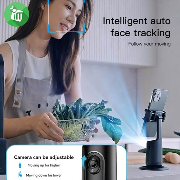 Boasting an AI-powered face tracking system and 360-degree rotation, this tripod ensures seamless video recording. Furthermore, its highly sensitive design automatically follows and rotates based on face and body movement.