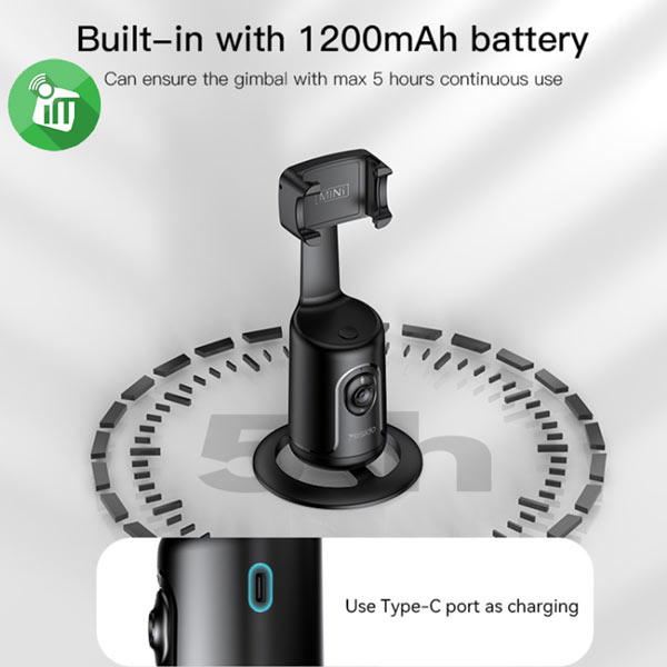 Initiating automatic 360-degree rotation for hands-free shooting is as simple as double-clicking the power button. The optimal shooting distance is 1 to 3 meters, and the 1200mAh battery ensures an impressive 4-8 hours of continuous use.