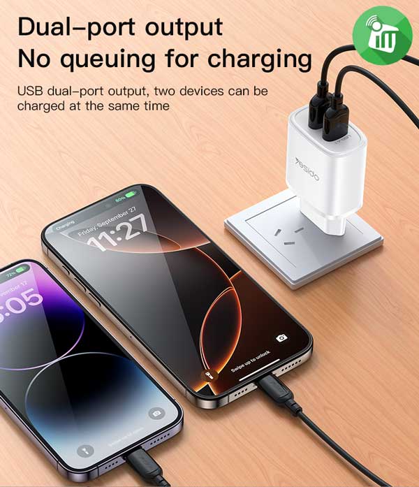 Yesido YC72 Dual Port Suitable for charging smartphones, tablets, Bluetooth devices, power banks, and other USB-powered electronics—making it a versatile solution for all your charging needs.