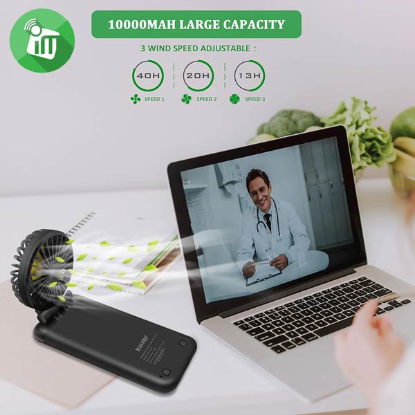 ZLS Power Bank 10000mAh with a humanized handle design, it can be used as a handheld fan or a table fan and mobile phone holder, there are 24 powerful suction heads on the power bank, which can be attached to the mobile phone to play games while charging or watching movies as a mobile phone holder. Multiple Scenarios When you choose the best handheld fan, you get all the benefits that a quality fan can offer and have the option to take it anywhere. Whether you are travelling by train, playing a mobile game or working long in the office, this personal fan will always be useful in warm and hot weather.
